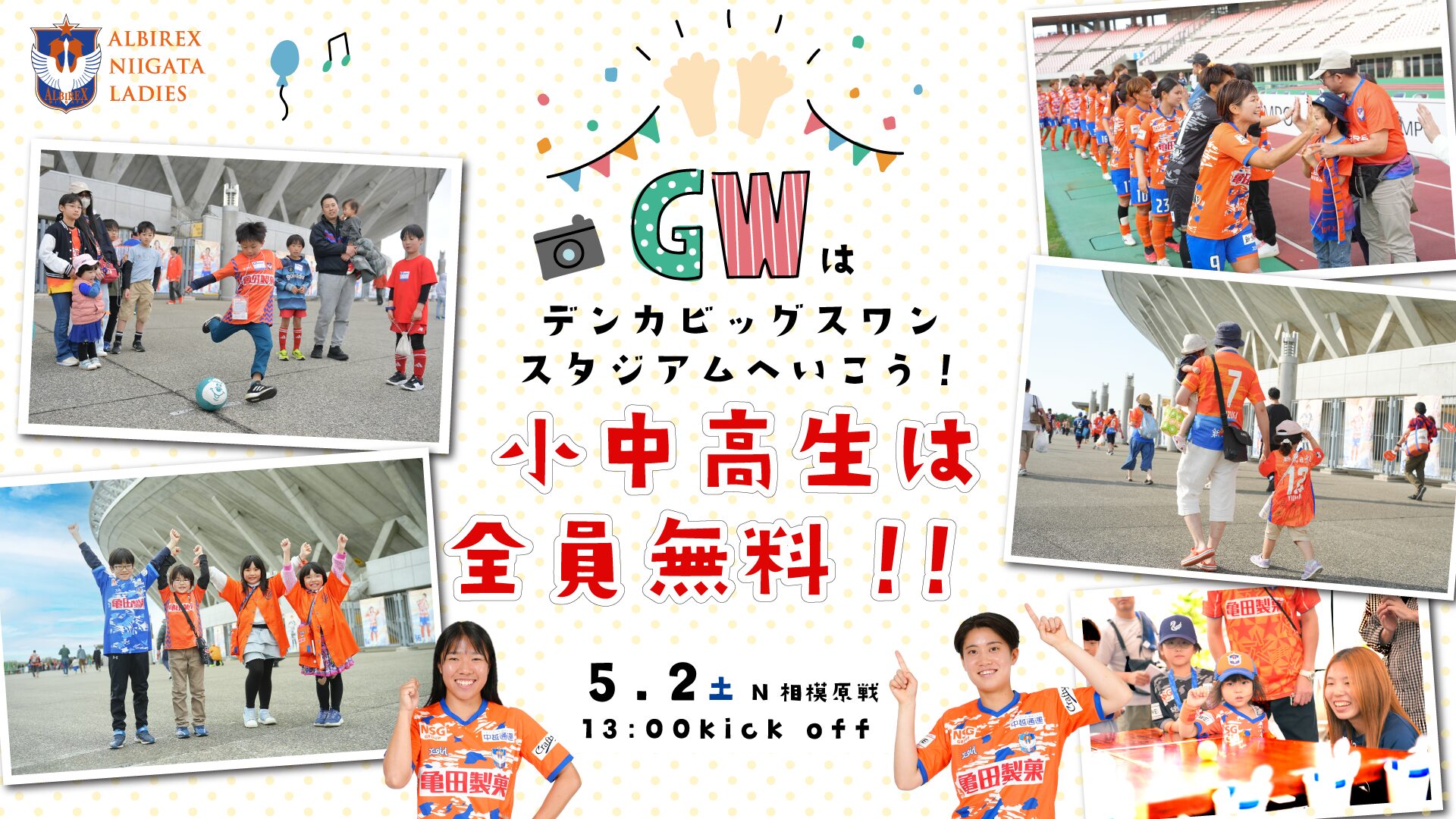 GWはアルビレディースの試合を観に行こう!5月2日(土)大宮戦に小・中・高校生をご招待!