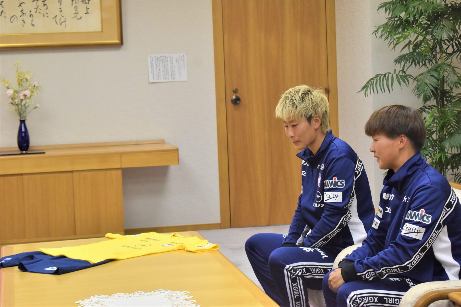 WEリーグカップの結果について、二階堂市長から「本当に惜しい試合だった。優勝したかったですよね。」と労いの言葉をいただくと、川澄選手は、「結果は準優勝となりましたが、選手達はタイトルに手が届くんだという前向きな意識に変わったので、今回の決勝戦は良い経験でした」とカップ戦を振り返ると共に今後の意気込みを語りました。