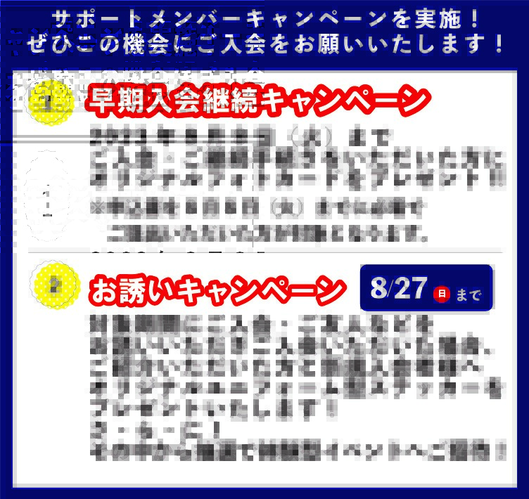 ご入会・ご継続手続きをいただいた方に選手の直筆サイン入りオリジナルフォトカードをプレゼントいたします。
