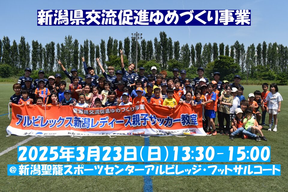 いつもアルビレックス新潟レディースに温かいご声援をいただきまして誠にありがとうございます。2024年度 新潟県(交流促進ゆめづくり事業)『アルビレックス新潟レディース親子サッカー教室 』を下記日程で開催いたします 。