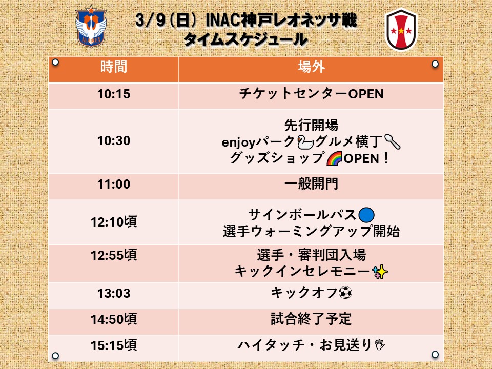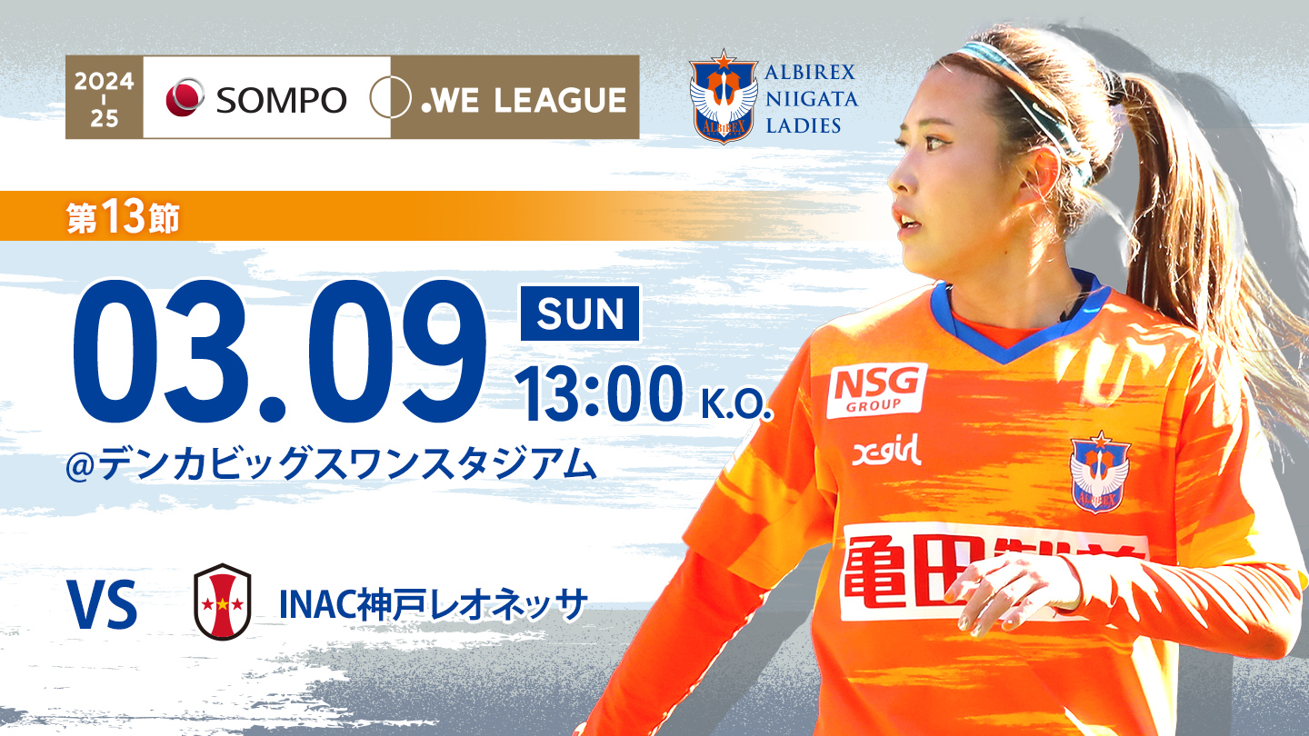 ①2025年3月9日(日) 13:00キックオフ 第13節 INAC神戸レオネッサ戦 → 3/2(日) 12:00まで