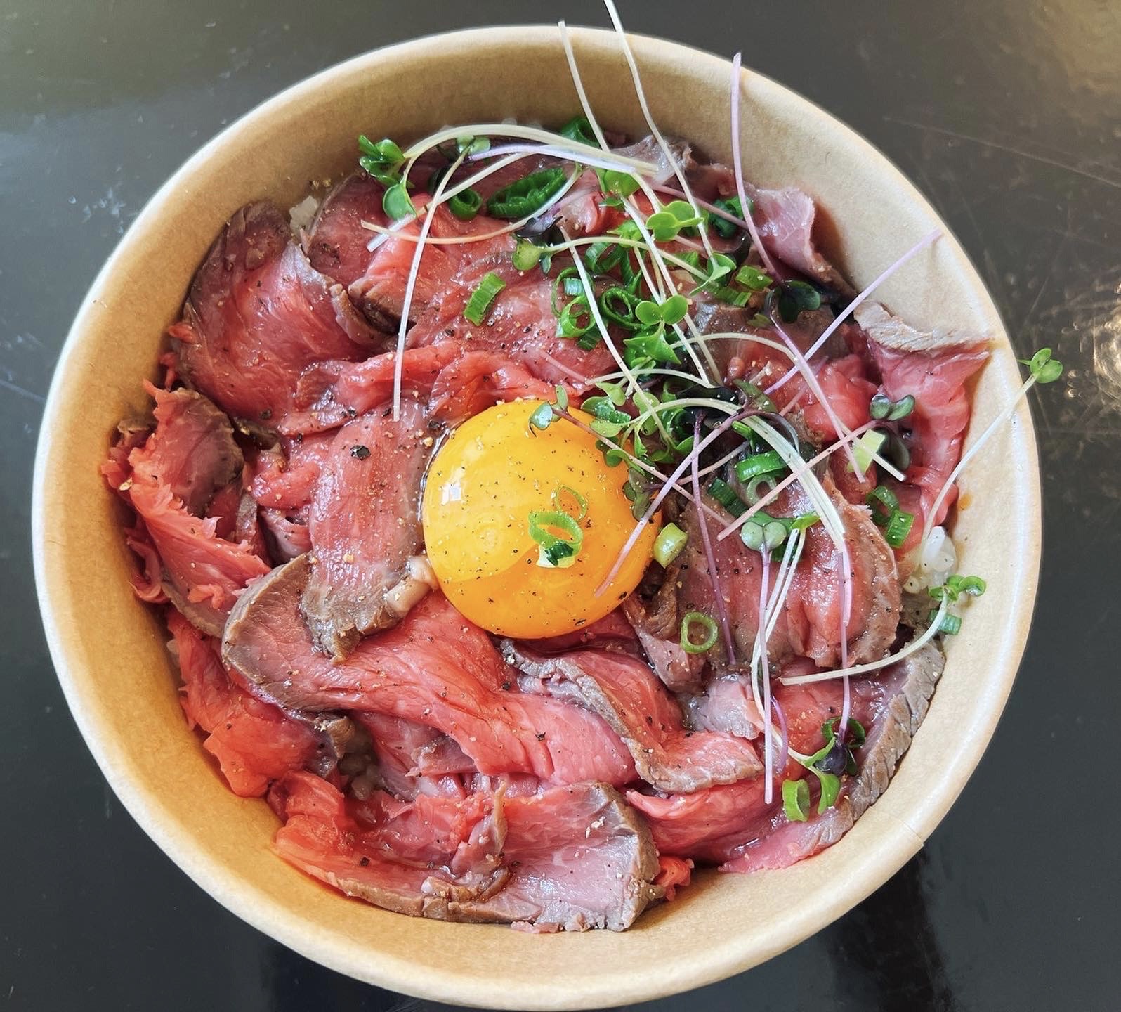 あがの姫牛の赤身肉を使ったローストビーフ丼は一度はぜひ召し上がりください🍖定番メニューのほかにも手軽なおつまみメニューや自家製ドリンクも用意してます!