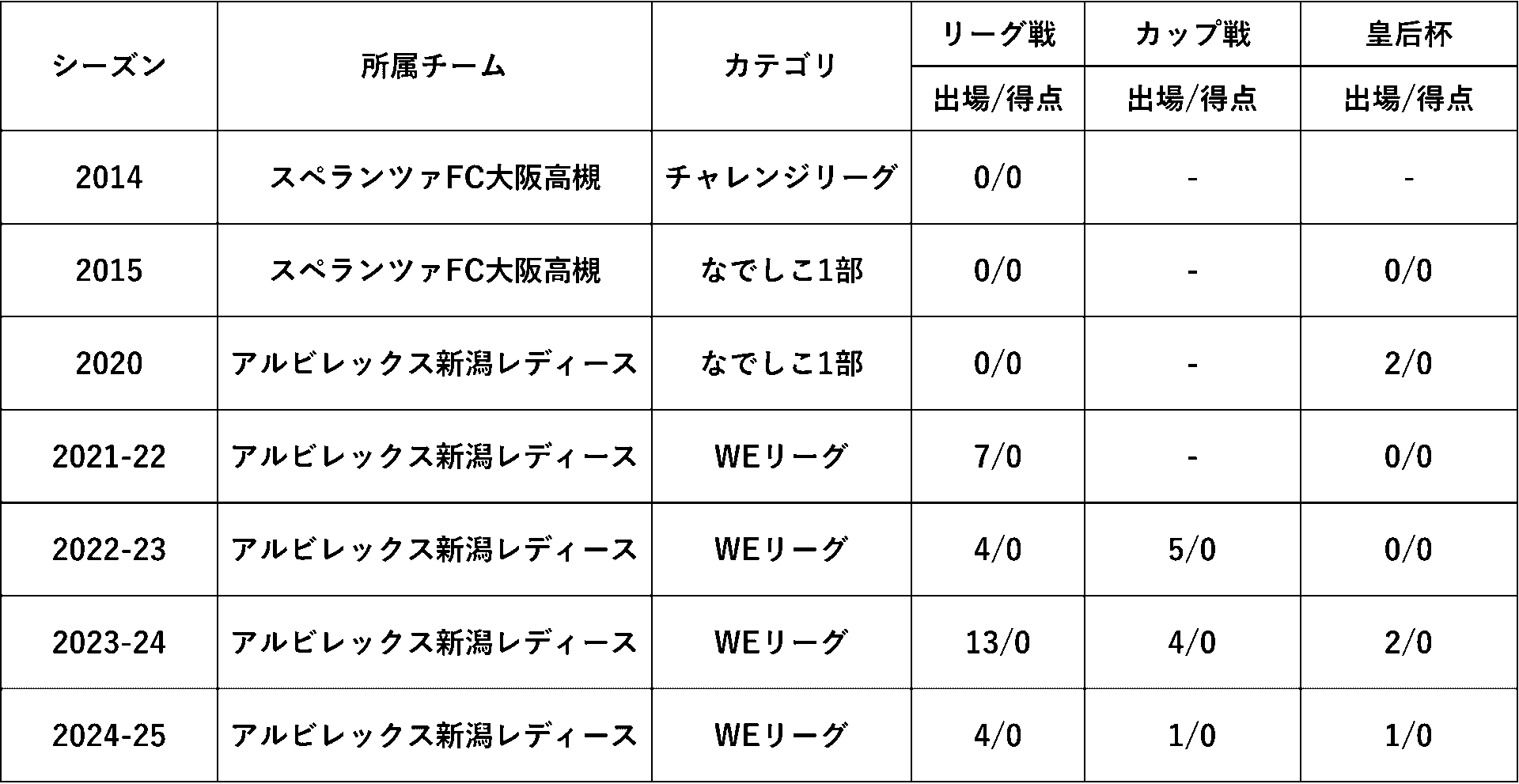 ※なでしこリーグ・WEリーグ通算 28試合出場 0得点