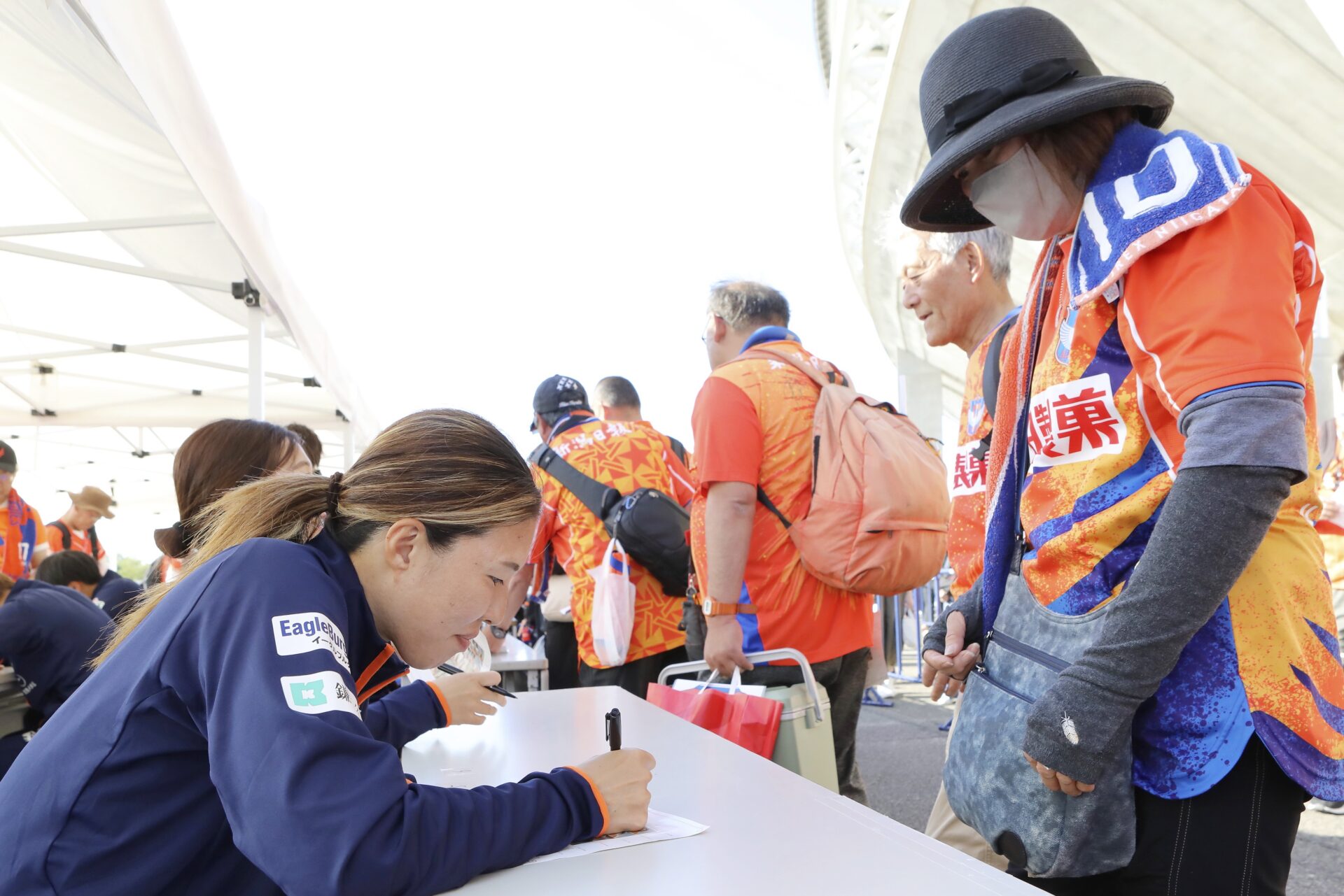 サポーターの皆さまから激励やねぎらいのお言葉をいただきながら、またスタジアムにお越しいただけるように選手みんなでお見送りをさせていただきます