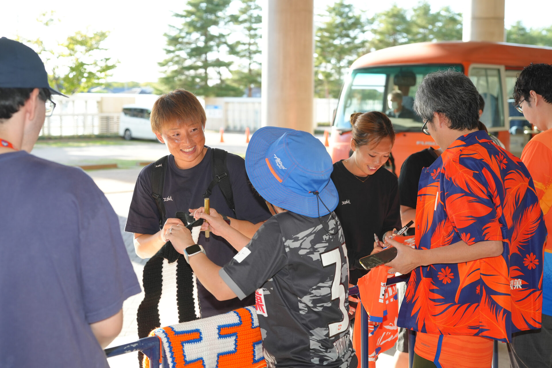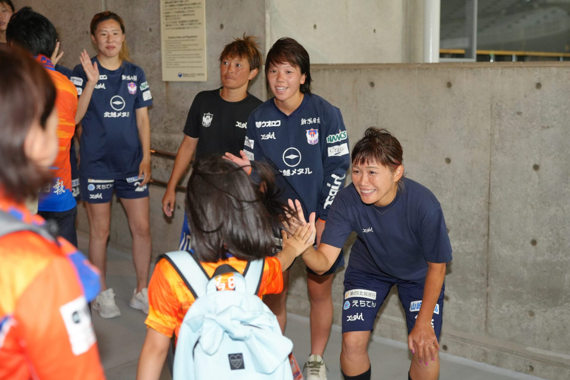 アルビレックス新潟レディースのホームゲームでは、試合終了後、お帰りになる皆さまをハイタッチでお見送りするイベントを実施しています✨