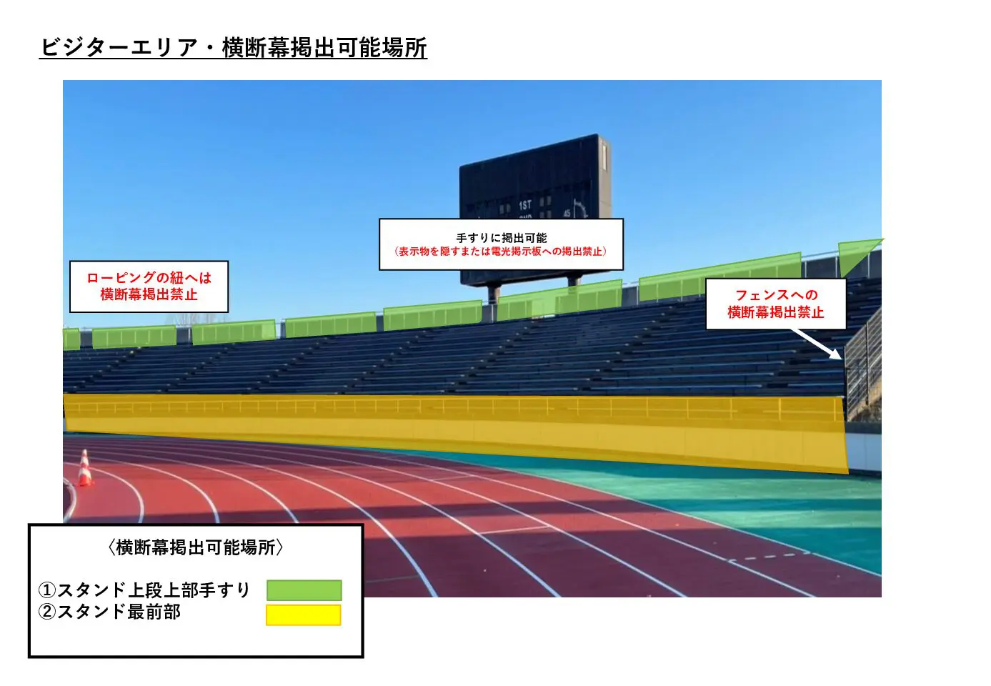 ※横断幕の掲出は、各スタンドに掲出が可能です。(横断幕掲出については、先行入場と同時刻より入場・掲出が可能となります)