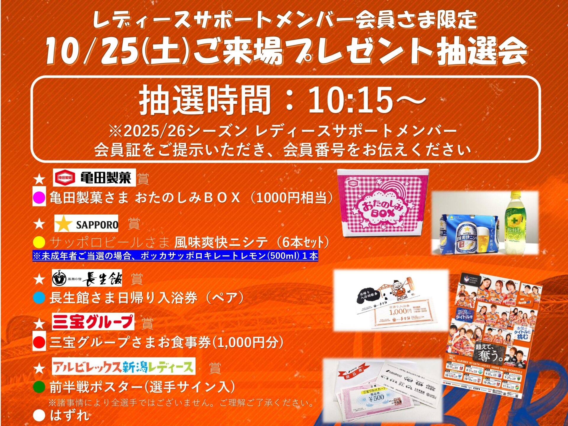 レディースサポートメンバー会員様限定のお楽しみ抽選会を今季も実施します!