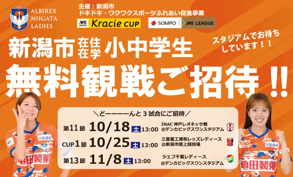 いつもアルビレックス新潟レディースに温かいご声援をいただきまして誠にありがとうございます。