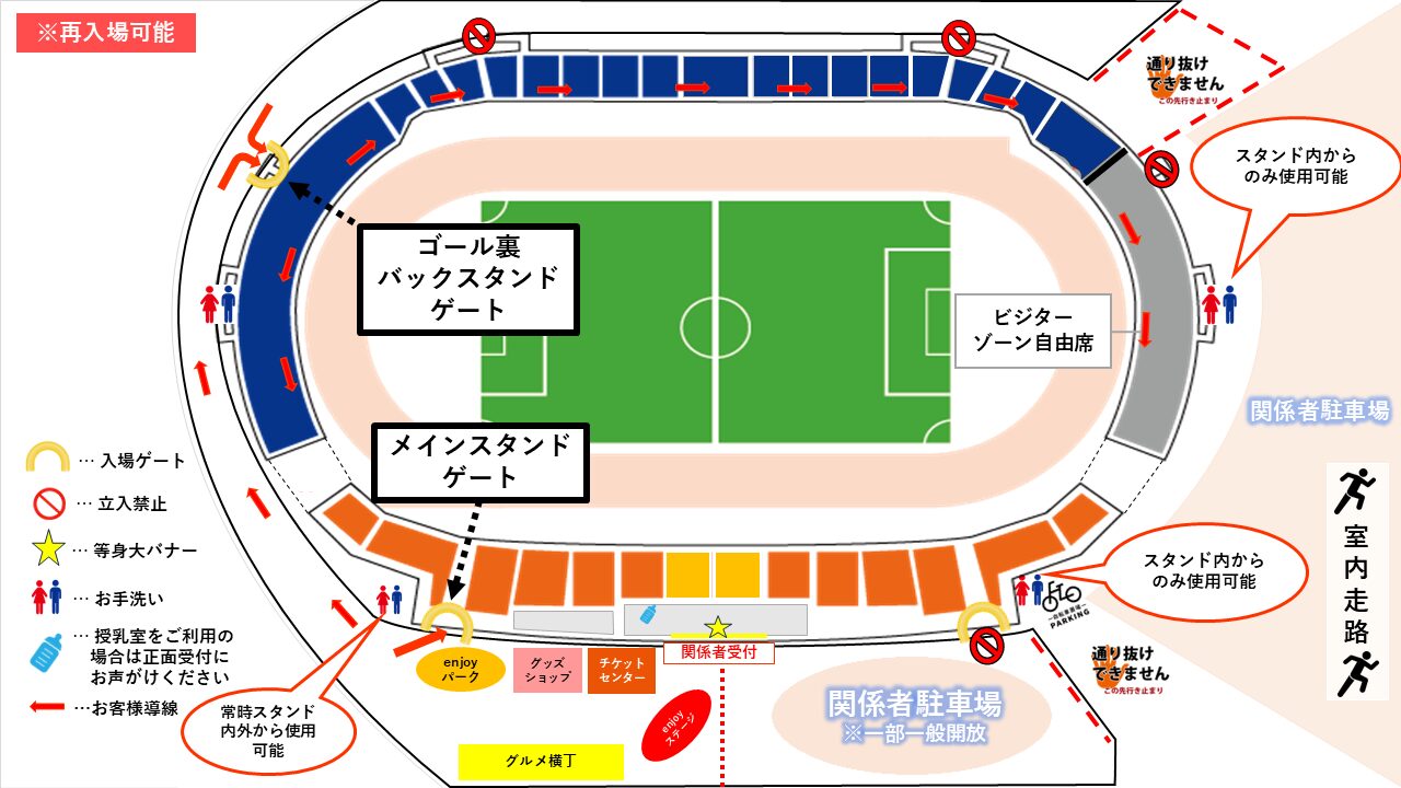 ご入場はメインスタンドゲート、ゴール裏バックスタンドゲートの2箇所からとなります。
