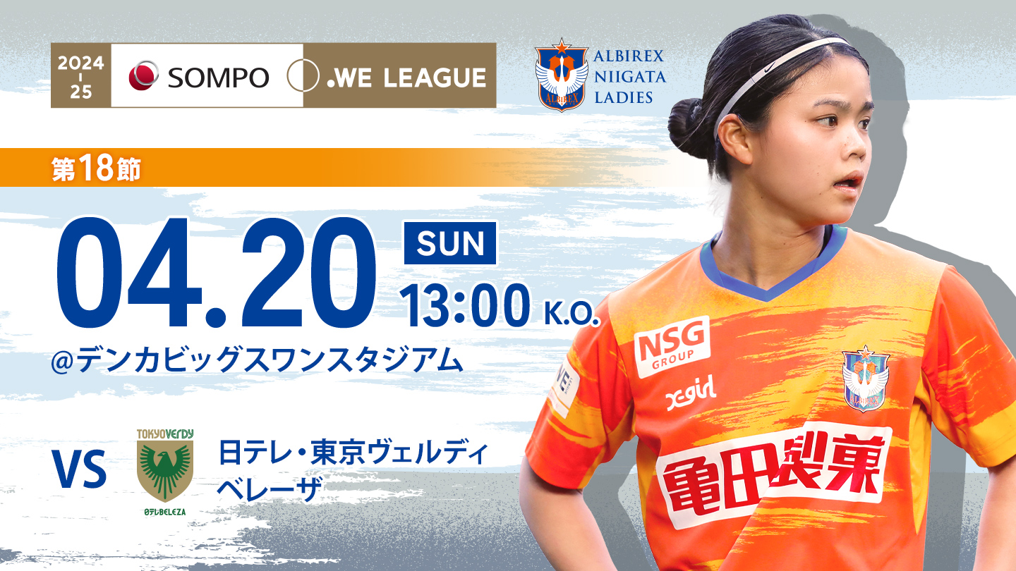 4月20日(日)に開催される、2024-25 SOMPO WEリーグ 第18節 日テレ・東京ヴェルディベレーザ 戦の