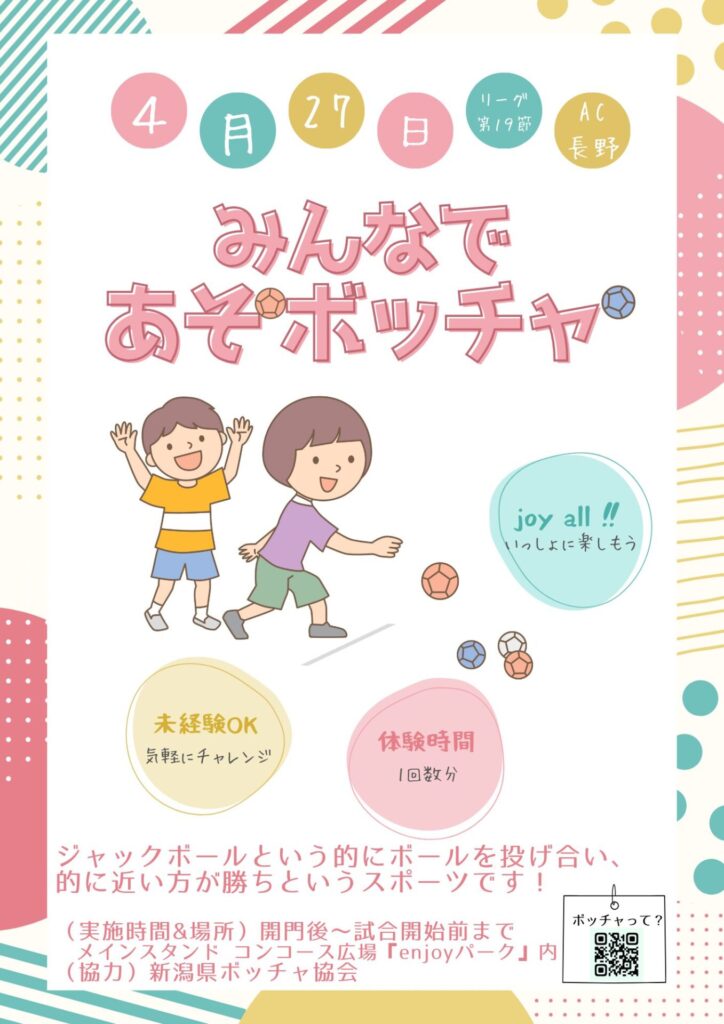4月27日(日)2024-25 SОMPО WEリーグ 第19節AC長野パルセイロ・レディース戦において、『 みんなで あそ*ボッチャ*』を開催いたします。