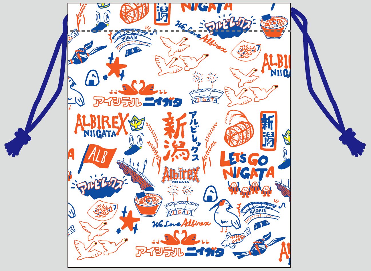 選手たちのイラストを巾着全体に配置した総柄風デザインの巾着。