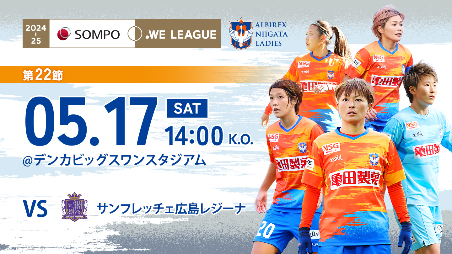 5月17日(土)に開催される、2024-25 SOMPO WEリーグ 第22節 サンフレッチェ広島レジーナ 戦の