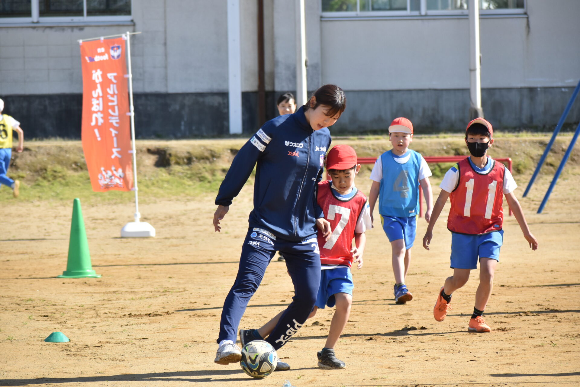 サッカー教室は、小穴 U-15監督指導のもとサッカーボールを使った運動やミニゲームを実施いたしました。
