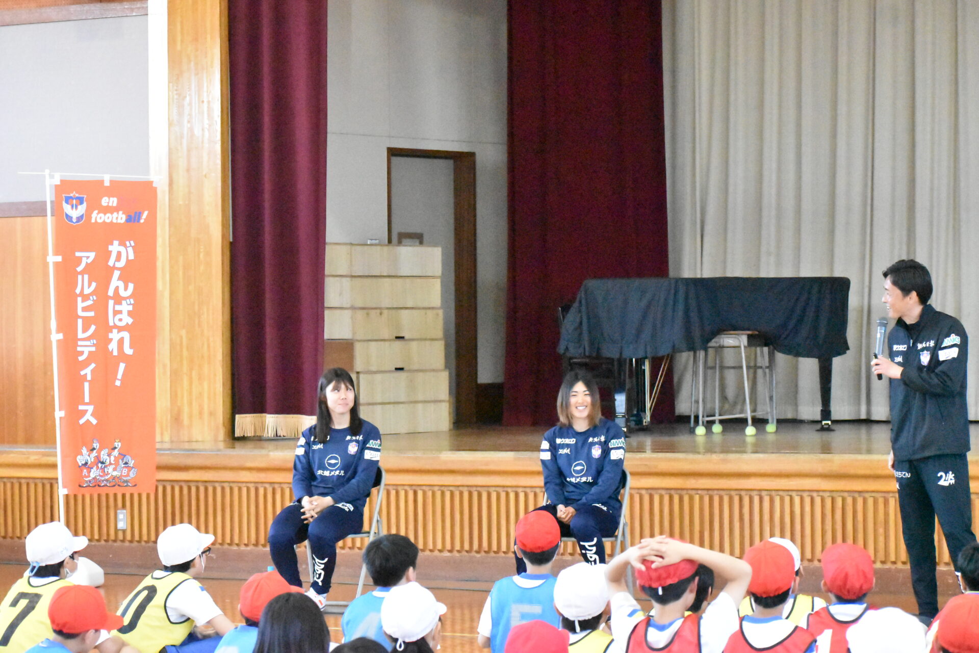 本活動には選手を代表して石田千尋 選手・横山笑愛 選手、指導スタッフとして小穴康朋 U-15監督・