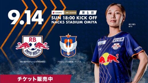 9月14日(日)に開催される、2025/26 SOMPO WEリーグ 第6節 RB大宮アルディージャWOMEN 戦の