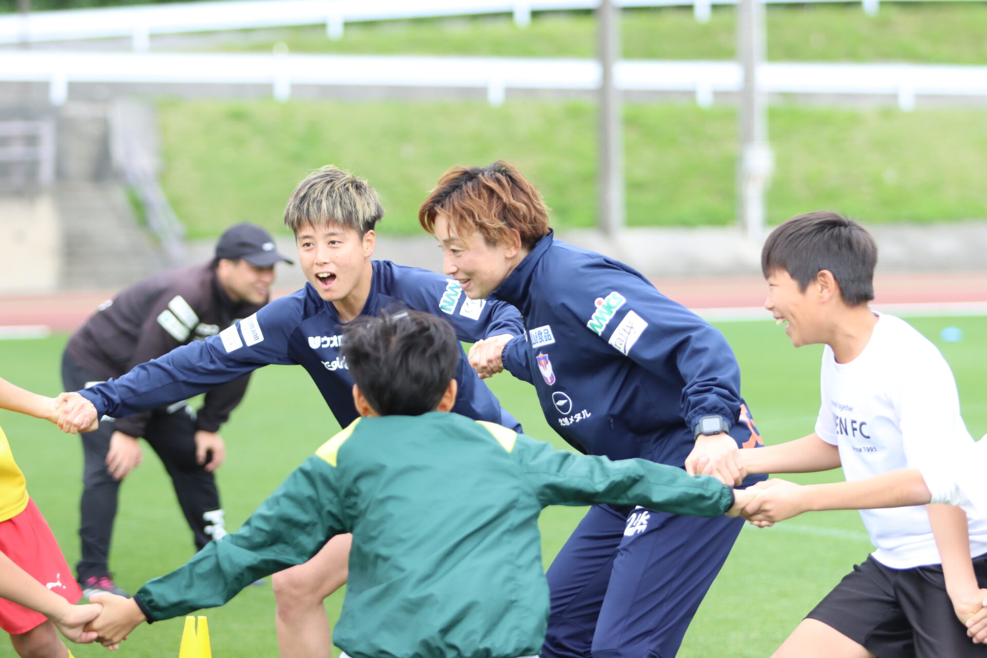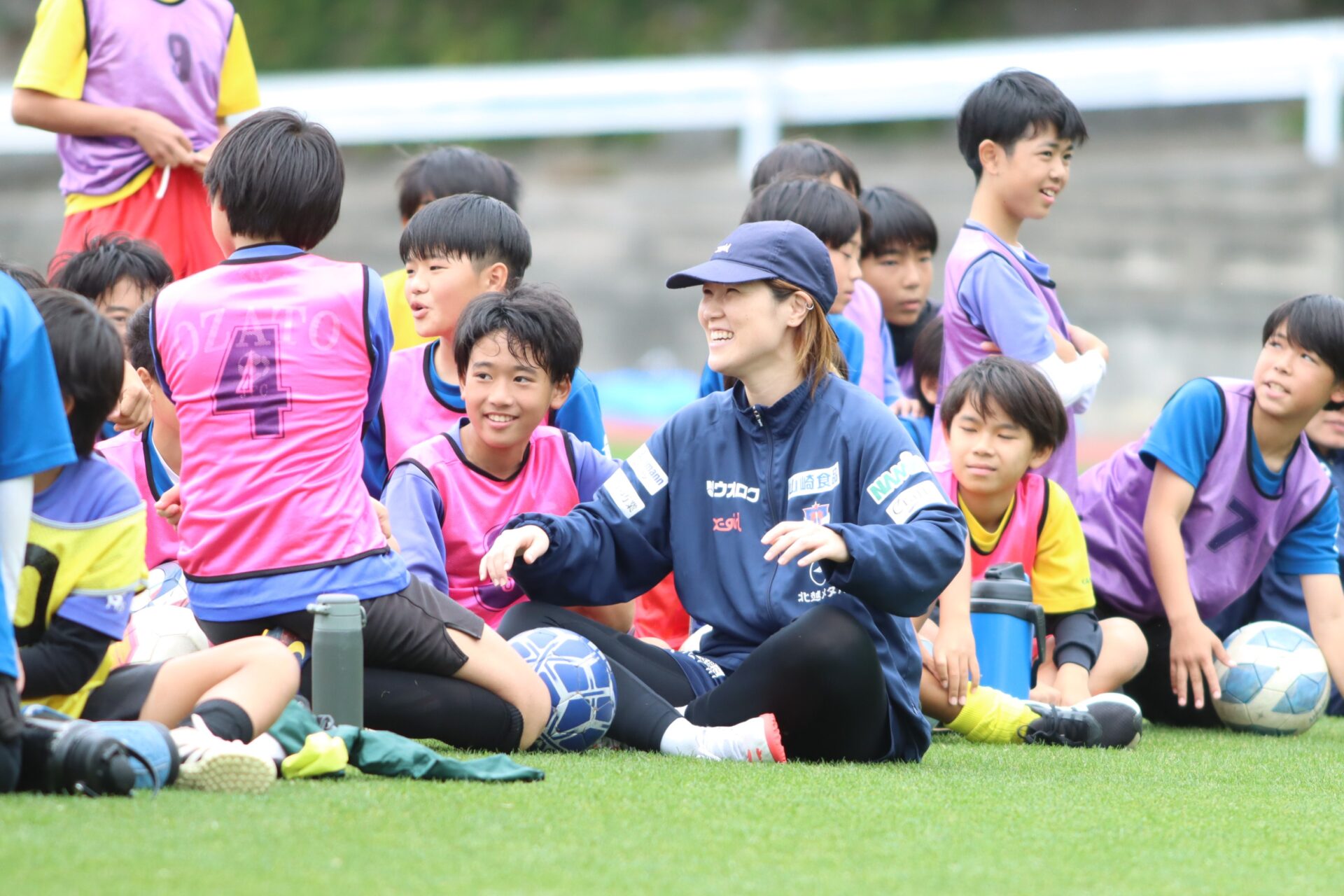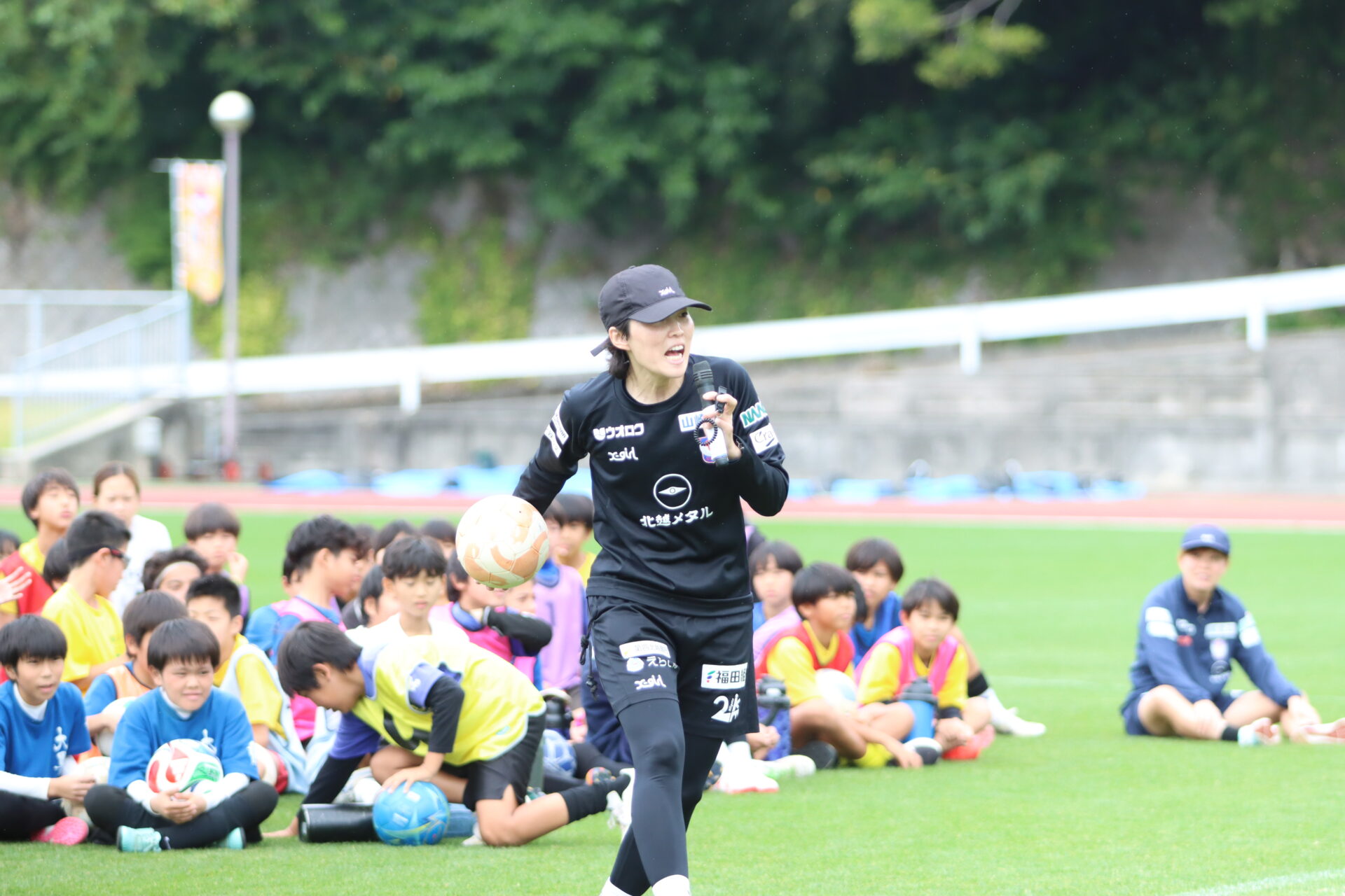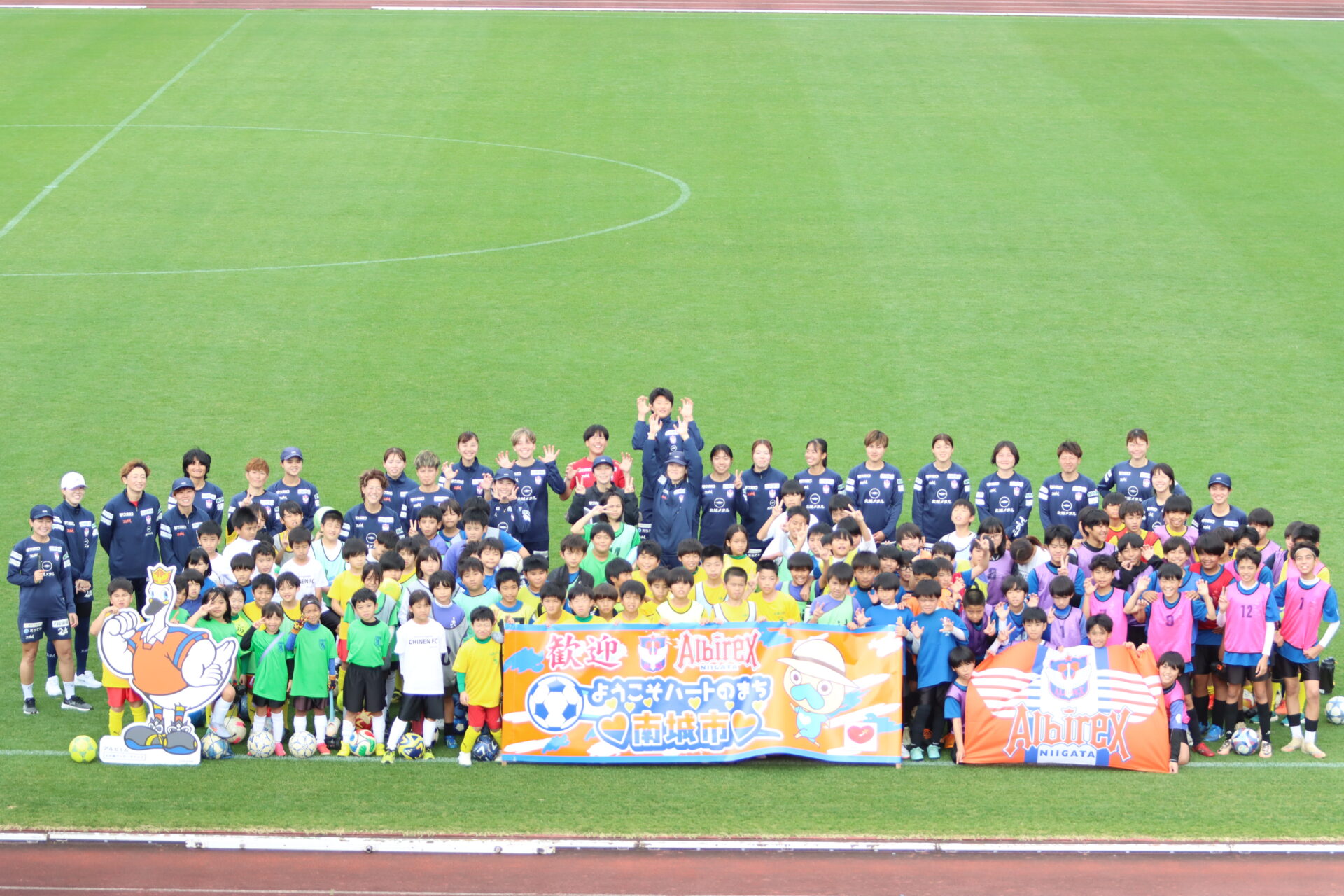 この日はトレーニング終了後に100名を超える地元のサッカークラブの子供たちと一緒にサッカー教室を行いました。