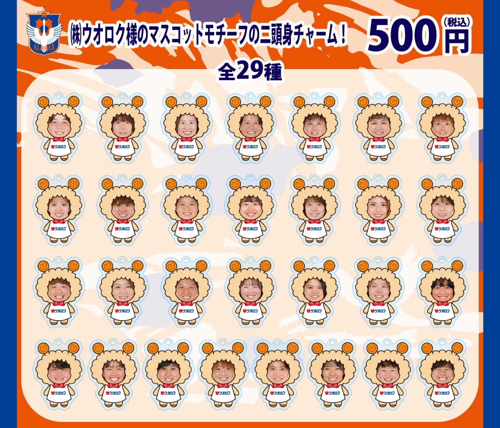 今節は、選手たちがウオロク様のマスコットキャラクター「ウオたん」に変身したアクリルチャームがついています!