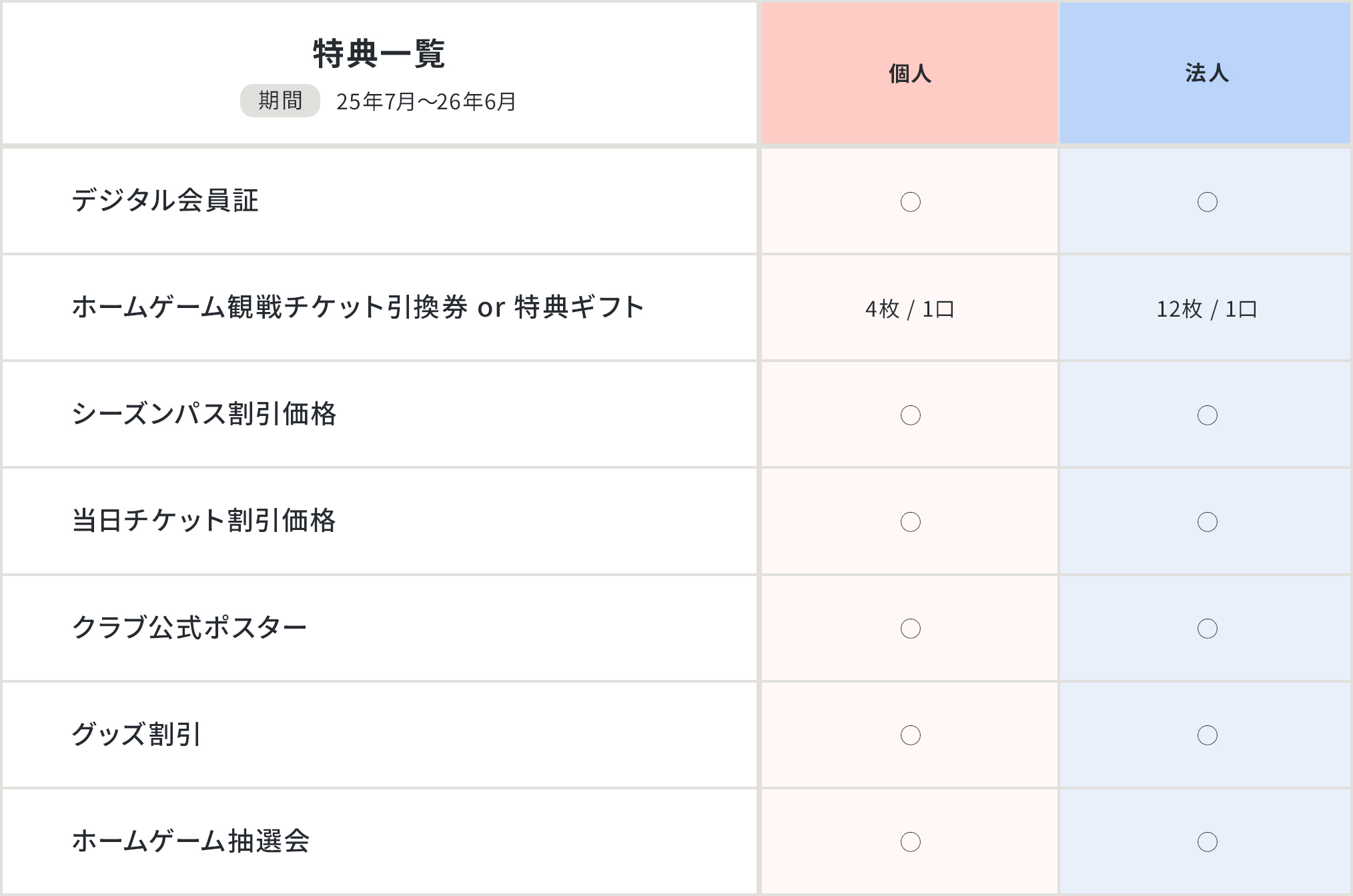 | 発送物 | 2025年7月25日までにご継続のお手続きをいただいた方へはホームゲーム初戦(8月17日浦和戦)までにお手元に届くよう発送予定 |